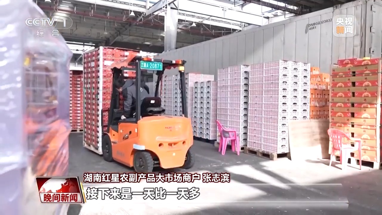 果盘子也供应充足,为年货市场添滋味。在湖南长沙的农副产品大市场,来自国内外的水果、生鲜等农副产品琳琅满目,上万家商户线上线下忙活着批发零售。