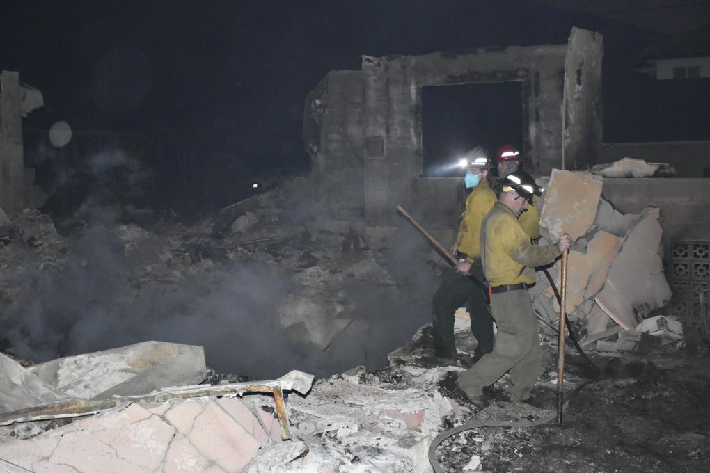 1月9日,消防员在美国加利福尼亚州洛杉矶县东部的阿尔塔迪纳地区工作。新华社发(高楚灵摄)