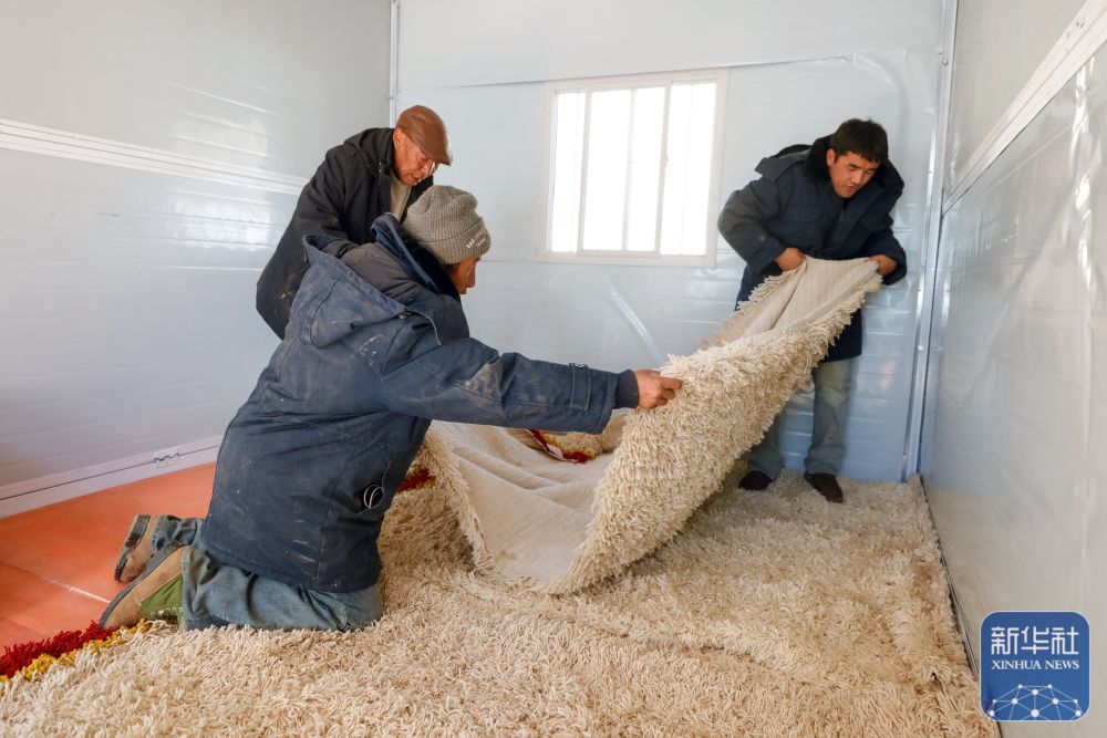 1月10日,在定日县长所乡古荣村,受灾群众将领取到的过冬物资搬入板房。