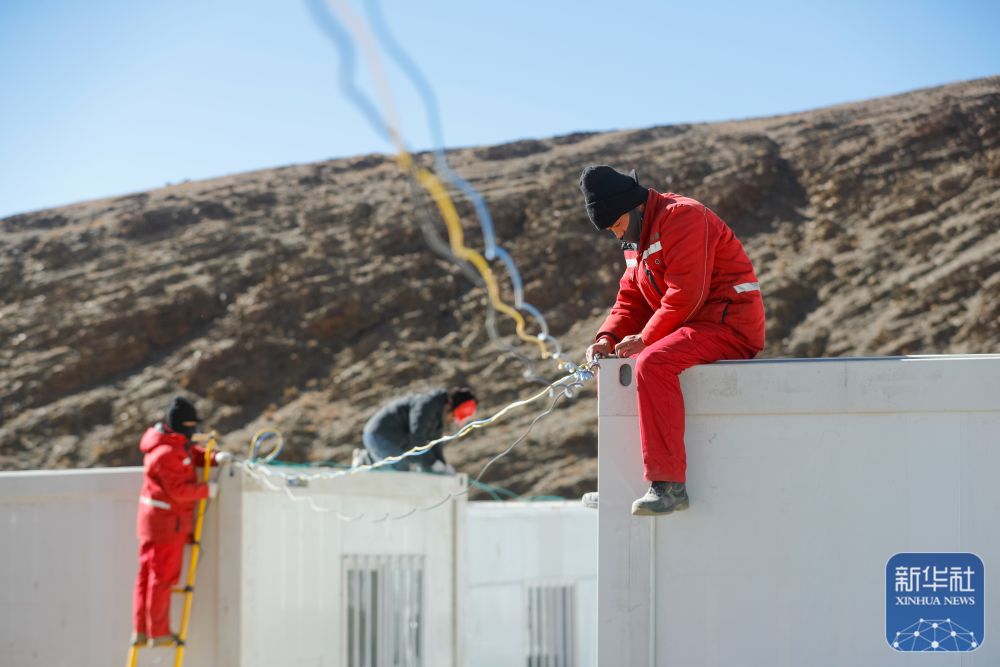 1月10日,在定日县长所乡古荣村,工人在为板房搭设电路。