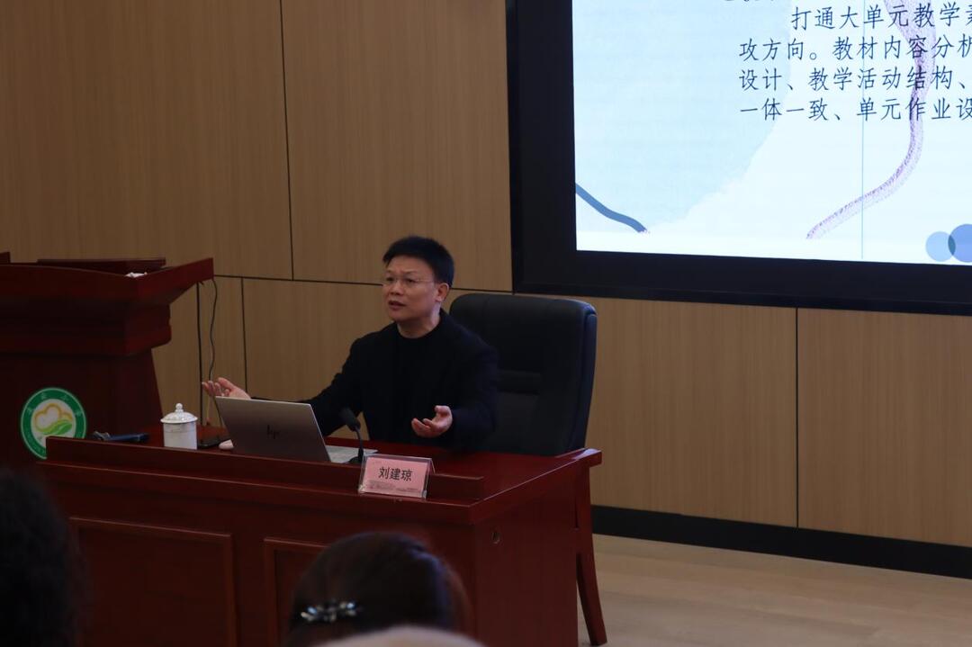 刘建琼以高瞻远瞩的视野,深入剖析了基础教育改革的逻辑谱系与课程方案。他指出,新教材大单元教学恰似绘制知识蓝图的妙笔,教师应站在全局高度,精准把握学科核心素养的培育路径。在刘建琼的精彩讲解中,大单元教学从抽象的概念化为生动的实践指南,他强调教师应成为教育征程中的 “三有” 行者:如仰望星空的智者,洞察教育发展方向;像目光深邃的学者,统揽教学内容全局;更要做脚踏实地的探索者,将创新思维融入每一堂课。