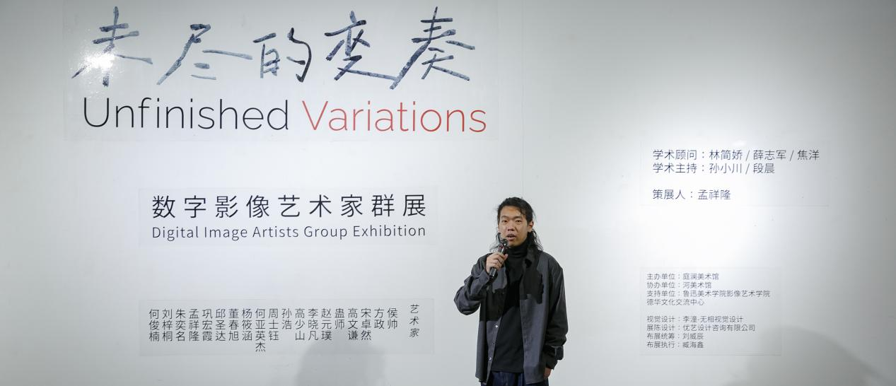 最后由艺术家代表朱奕名发表感言:对我而言,“未尽的变奏”这个展览主题充满启发性。它提醒我们,艺术永远在变化之中,每一次变奏都是过去与未来的对话。作为青年一代,我们有幸站在技术与艺术交汇的前沿,以敏锐的视角观察世界,用自己的创作语言回应这个复杂而多元的时代。