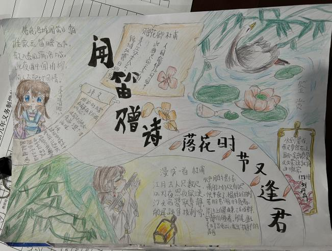 语文赛道同样精彩,古色古香的诗词世界是热门主题。从李白的豪放飘逸到李清照的婉约细腻,一首首诗词在同学们的笔下与灵动的水墨画、飘逸的书法相结合。还有同学以四大名著为蓝本,绘制人物关系图,撰写人物小传,剖析经典情节,展现出对中华传统文学的热爱与钻研精神。手抄报上的一笔一划、一字一句,皆凝聚着同学们对语文的钟情。