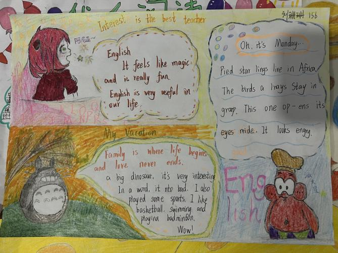 比赛分为英语、语文两个赛道,同学们踊跃参与,各显神通。在英语赛道中,同学们以英文名著为基石,如《简·爱》《鲁滨逊漂流记》等,用流畅的英文书写故事梗概、经典语句赏析,搭配色彩绚丽的插画,展现出对西方文学的深刻理解。有的手抄报聚焦于英语俚语与谚语,通过有趣的图画和例句,将晦涩的知识变得生动活泼,让人在欣赏中学习英语知识。