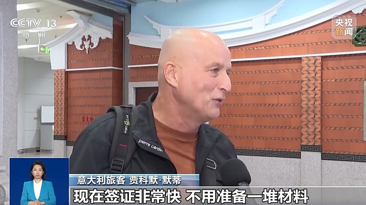 意大利旅客 贾科默·默蒂:现在签证非常快,不用准备一堆材料。现在非常方便,非常好。因为这样节省了很多手续,之前需要很多的文件,非常复杂。现在很快,因为是免签。