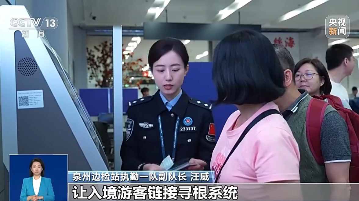泉州边检站执勤一队副队长 汪威:这几年出入口岸的很大部分都是华侨,特别是寻根谒祖的侨二代、侨三代。未来,我们打算和华侨历史博物馆合作,让入境游客链接寻根系统,为他们提供快速便利的寻根服务。