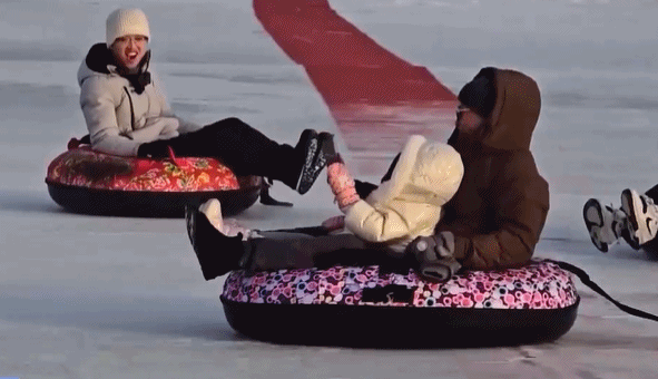 在内蒙古乌兰察布的红石崖景区冰雪乐园,一场别开生面的冰雪趣味比赛正在火热进行中。今天参赛的选手们有来到这里的游客,也有一些企业的员工,他们选择这个周末来这里进行团建。