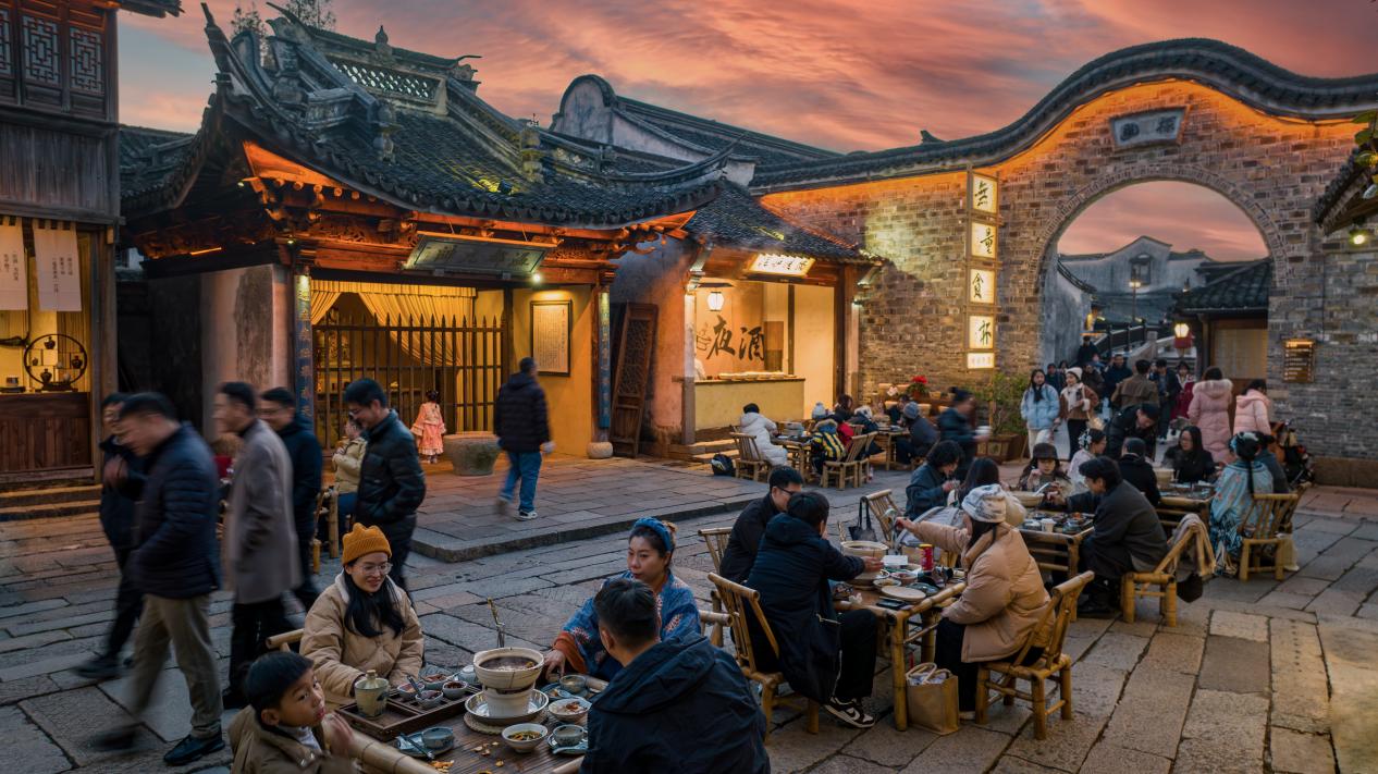 游客在乌镇享受泥炉暖锅。受访者供图在浙江嘉兴乌镇景区,游客们围坐一桌,吃暖锅,在暖意融融中体验水乡古镇的文化韵味。据介绍,为邀各方游客享美食、佳酿,乌镇景区特别推出以特色湖羊为主“暖锅”和年货市集、冬夜诗会等文化活动。