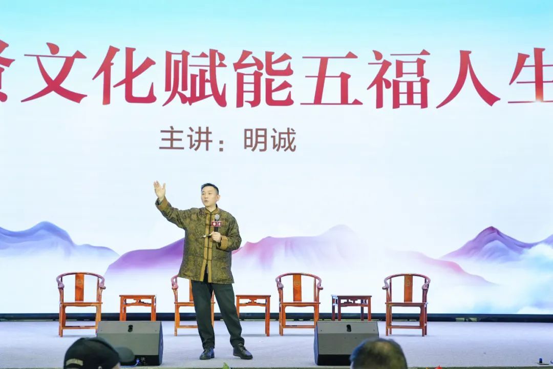 北京德行天下传统文化发展中心理事长明诚以 “圣贤文化赋能五福人生” 为主题,用深入浅出、幽默风趣的家风故事,告诉观众如何智慧地处理与父母、爱人、孩子及工作的关系,强调通过落地五代工程、践行 “三五计划”五项修炼,实现五福临门。其课程体系以中华圣贤经典为基,以 “恭宽信敏惠” 为要,助力大众理解并追求长寿、富贵、康宁、好德、善终的五福人生,为家庭教育与个人成长提供新路径。