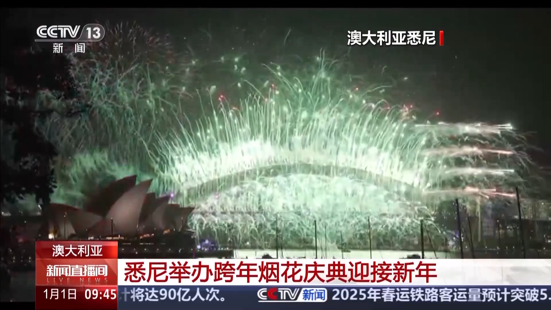 澳大利亚悉尼在当地时间1月1日0时举行了一场盛大的跨年烟花庆典。烟花在悉尼海港大桥的东西两侧、悉尼歌剧院和一些建筑物的屋顶以及浮台上绽放,覆盖了悉尼海港约7公里的范围。此次庆典使用了超过9吨烟花,持续12分钟,庆典还引入了无人机和空中燃放平台,带来了全新的观赏体验。