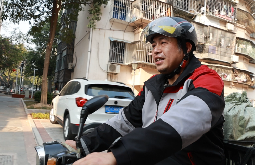 快递小哥:穿梭街巷 投递新春温暖