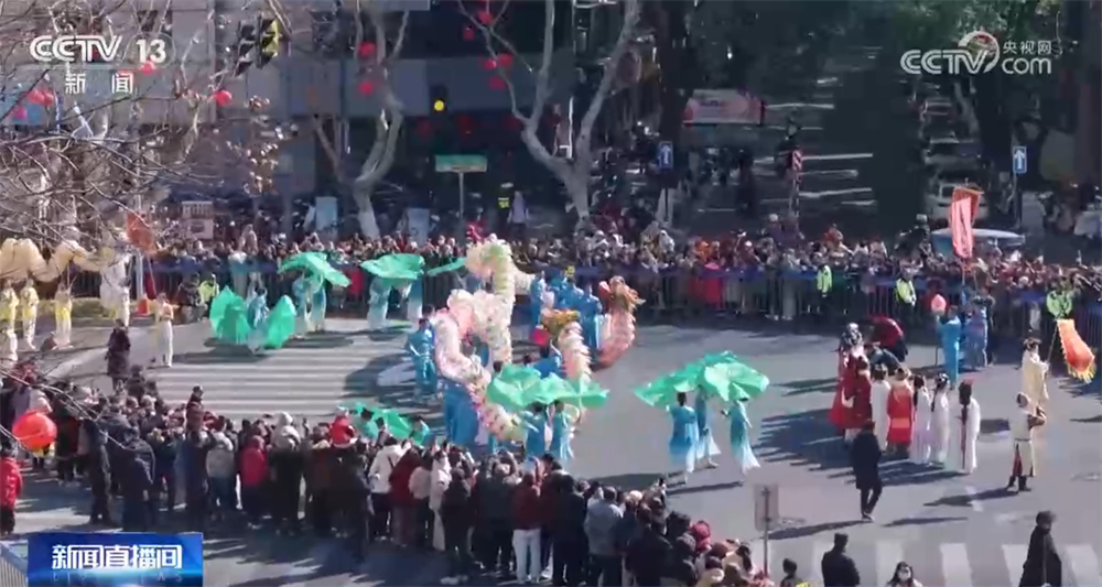在湖州吴兴区,新春踩街活动在街头热闹上演,威风锣鼓响起,舞龙舞狮团队率先启程,各式龙灯一路翻腾嬉戏,一幅江南水乡群龙欢腾庆丰收的生动场景。