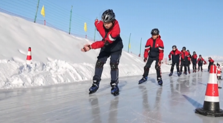 “冬韵塔城·悦在甘泉”冰雪欢乐季之滑冰课程走进新疆额敏县中小学校。
