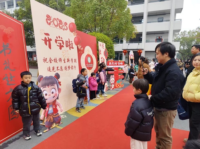 蛇年新春的校园里,处处洋溢着喜庆与欢乐。红毯铺就、展牌林立,学校充分挖掘“中国年”的各种元素,精心为孩子们准备了年味浓厚的开学迎新环境。瞧,孩子们簇拥着蛇年吉祥物,一张张笑脸比春日暖阳还要灿烂。这一张张合照,将成为孩子们童年记忆中最温暖的片段,陪伴他们开启蛇年的奇妙旅程。