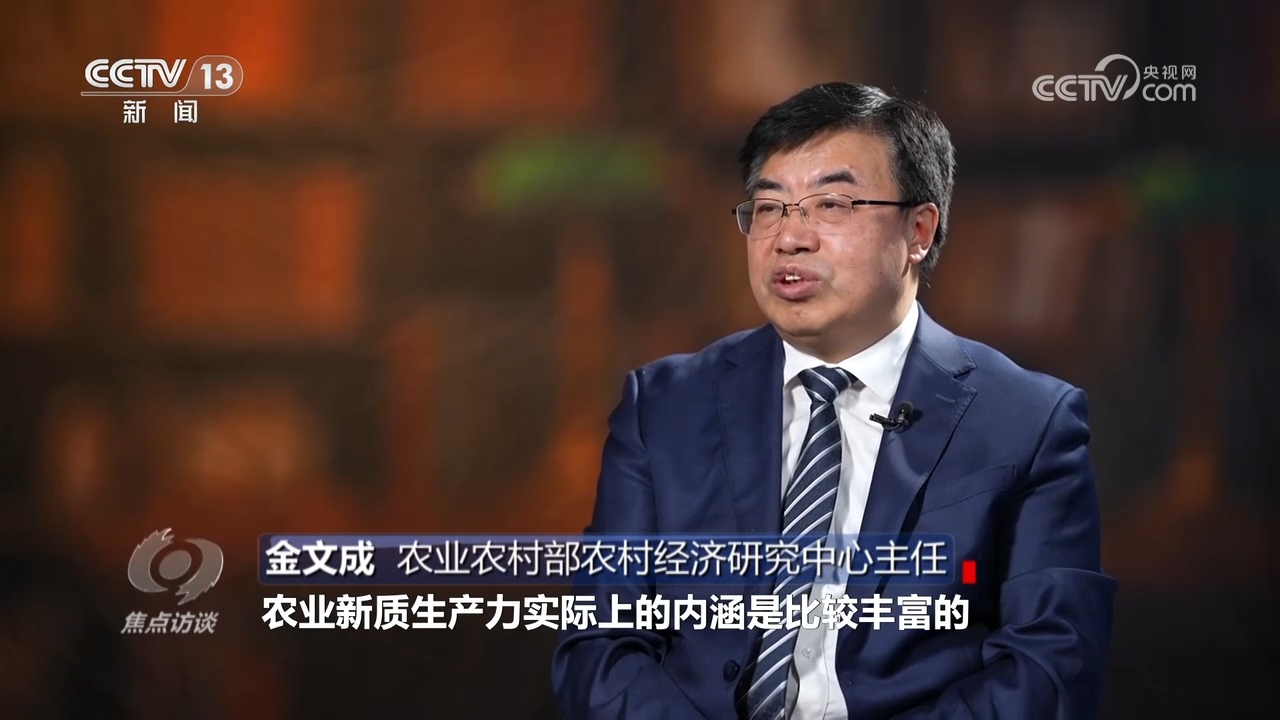 农业农村部农村经济研究中心主任金文成:“农业新质生产力实际上的内涵比较丰富,包括生物育种技术、无人机技术、人工智能技术、数字技术,这些应用能够有效改变农业生产发展的状况,能够全方位提升农业全要素生产率,对于加快农业现代化进程具有重要意义。”
