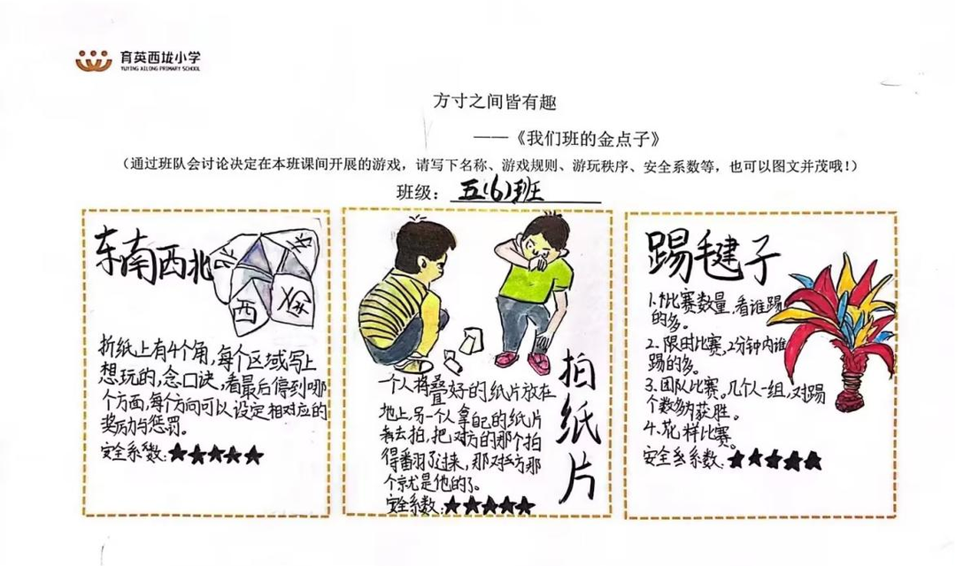 华声在线3月6日讯(通讯员 吴迪成卓 李蕾)长沙市芙蓉区育英西垅小学基于课间15分钟,以班级为单位开展“轻松+创新+安全”的三维快乐课间活动“方寸之间皆有趣”。活动以项目化活动开展,并以“如何让课间游戏更安全、有趣”作为切入点,以驱动性问题“怎样设计符合本班学情的班级课间游戏”将项目分为三个阶段:我最喜欢的课间游戏大调查、我们班的金点子以及我们班的安全游戏我推广。学生在完成项目的过程中,极大地提升了分析问题、解决问题、团队协作、创意实践的能力,为构建和谐、平安校园助力,并积极引导学生作好校园小主人的角色。活动持续开展以来,学生的15分钟课间变得更快乐、更安全、更彰显班级特色。