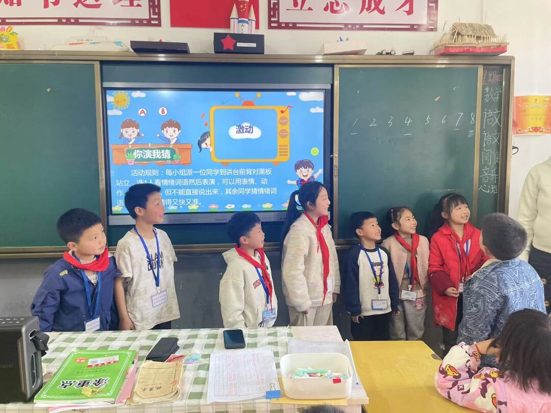随着互动游戏结束,何晶晶老师向同学们科普常见的情绪,并与同学们一起沟通交流他们在生活中体会到的情绪滋味。在场全体同学踊跃发言,分享自己日常的喜怒哀乐,何晶晶老师及时对他们的表达给予回应,并告诉全体同学情绪管理的办法。“转移注意力、合理发泄情绪、自我暗示法、深呼吸法······都是处理情绪问题的好办法。”何晶晶老师告诉孩子们。在场的孩子们欣然接受,表示受益颇深。