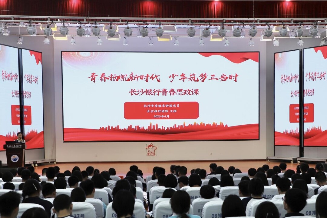 华声在线4月10日讯(通讯员 刘思宇)4月10日,长郡斑马湖中学图书馆三楼报告厅气氛热烈,一场别开生面的青春思政课在此精彩开讲。此次活动由长沙银行望城支行与长郡斑马湖中学联合举办,旨在强化青少年思想政治引领,为学生成长注入精神动力。