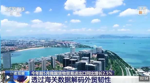 今年前5个月,我国货物贸易进出口实现了2.5%的增长。前5个月外贸运行还有哪些特点和亮点?透过海关发布的最新数据,我们还能获取哪些信息?来看记者的观察。