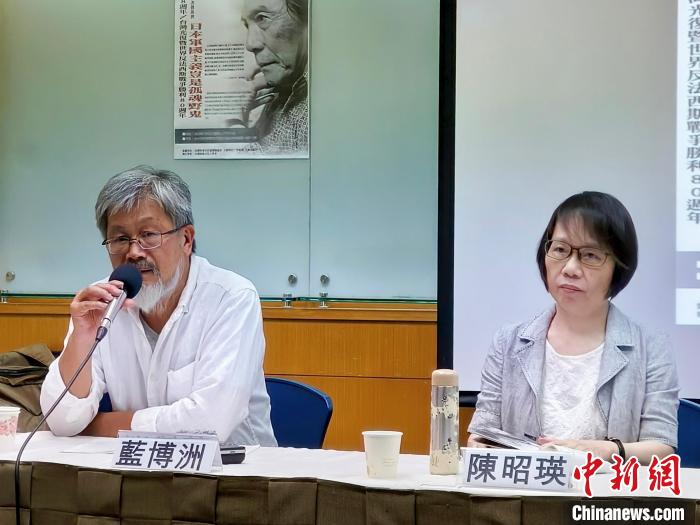 7月5日,人间出版社发行人、辜金良文化基金会董事长蓝博洲(左)及台湾大学中文系特聘教授陈昭瑛等文化界人士在台北出席活动。中新社记者 张晓曦 摄
