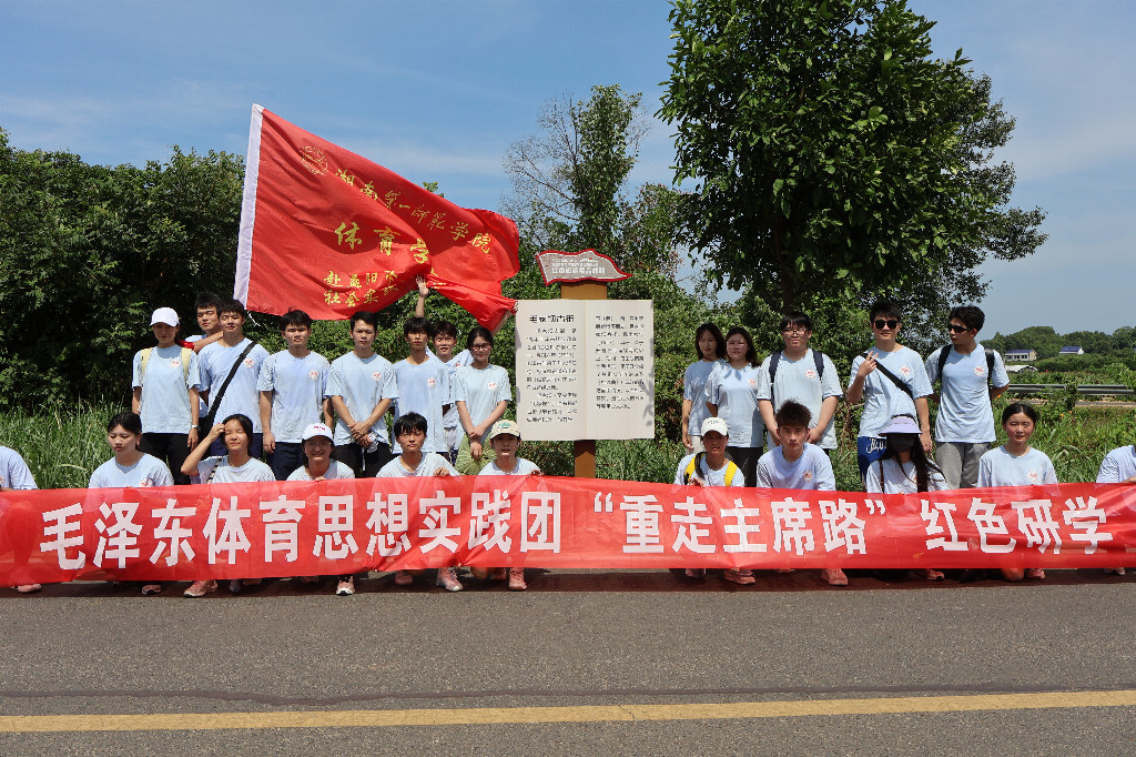 七月的沅江,骄阳似火,却挡不住一群青年学子追寻红色足迹的热忱。7月17日清晨七点,湖南第一师范学院体育学院三下乡团队的队员们,带着崇敬与期待,来到益阳市沅江市三眼塘村,踏上了“重走主席游学路”的红色研学之旅。30余名青年学子整理好衣襟,沿着1917年青年伟人与萧子升在此进行社会考察时的足迹,从毛家坝古街徒步走到三眼塘村委会,在烈日下感悟初心,于历史中汲取前行的力量。