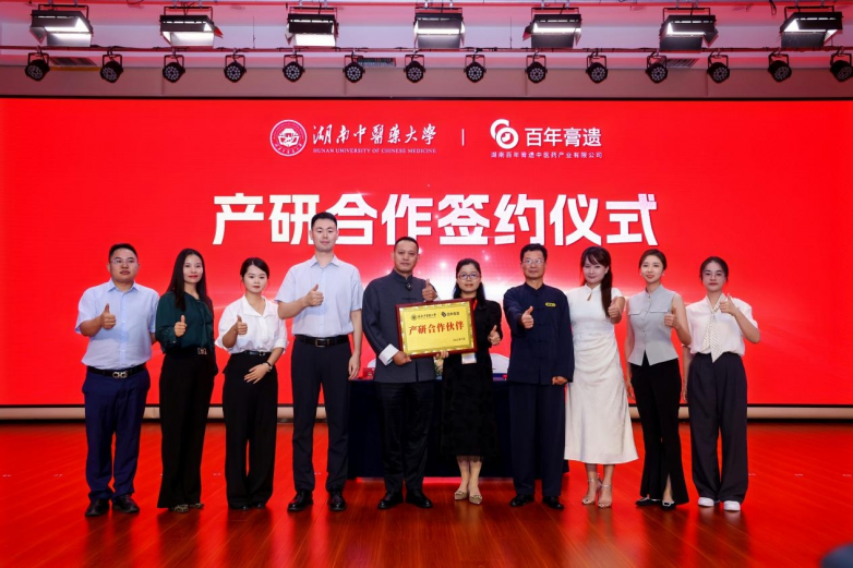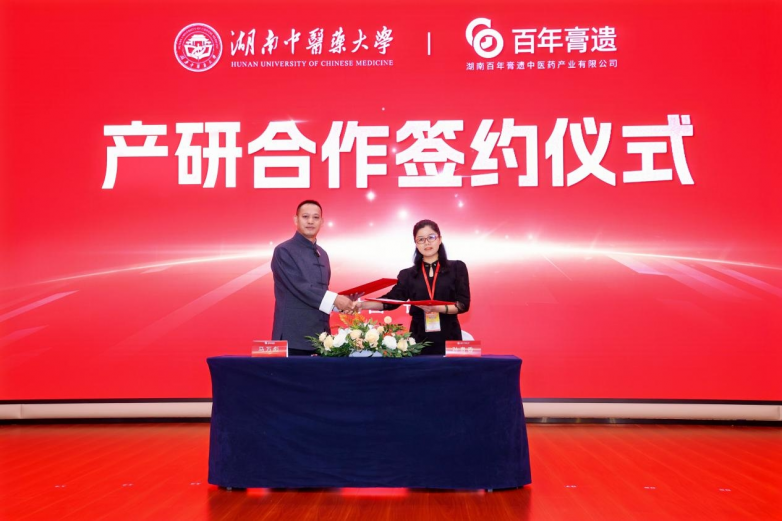 此次论坛期间,湖南百年膏遗中医药产业有限公司与湖南中医药大学就“食药同源产品深度开发”达成产研合作,湖南中医药大学中医养生学专业负责人、国家首届青年岐黄学者孙贵香教授团队产研合作现场签约。此次签约标志着双方将整合湖南百年膏遗中医药产业有限公司在传统膏方制剂、非遗工艺及中医药产业化方面的优势,与湖南中医药大学在中医理论、养生学研究及顶尖人才资源方面的雄厚实力,共同攻关食药同源功能食品的核心技术,探索传统智慧与现代科学结合的新路径,为市场孵化更具科技含量与文化底蕴的健康产品。