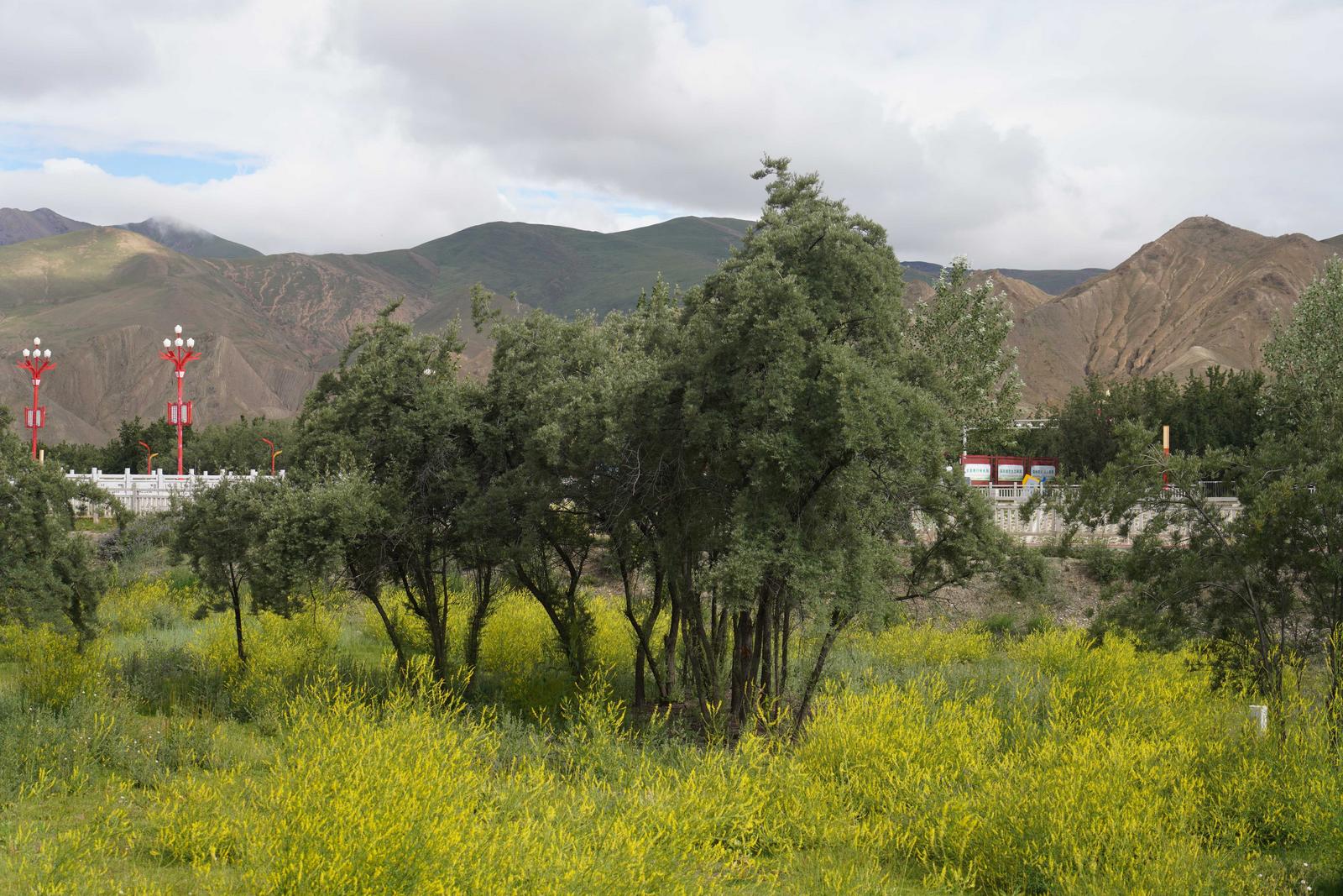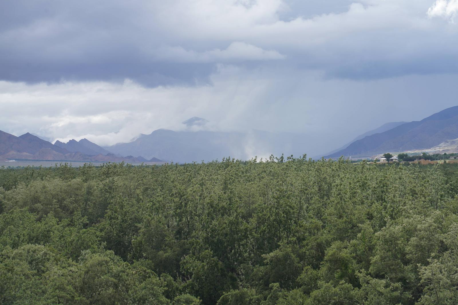 ▲从隆子县沙棘公园观景台上远眺,沙棘已长成参天乔木。中国网记者 胡俊 摄