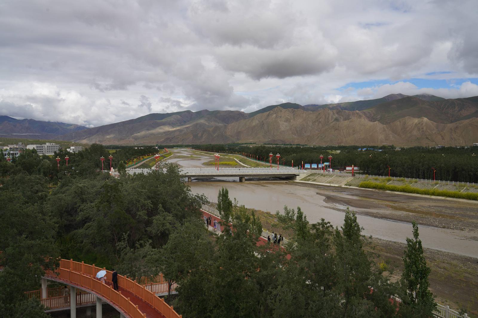 ▲从隆子县沙棘公园观景台上远眺隆子河两岸景色。中国网记者 胡俊 摄