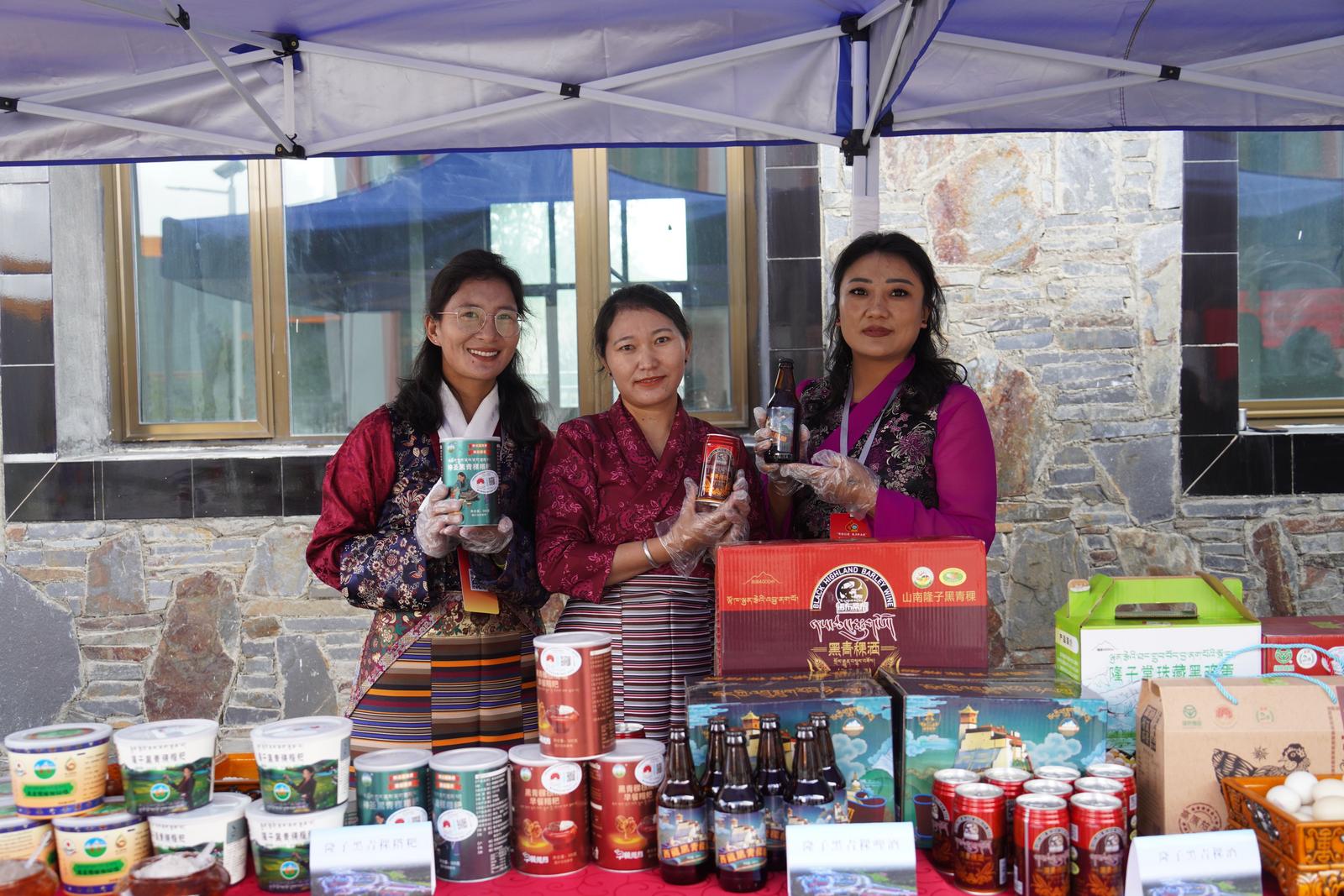 ▲隆子县农特产品展销会上展示的黑青稞系列产品。中国网记者 胡俊 摄