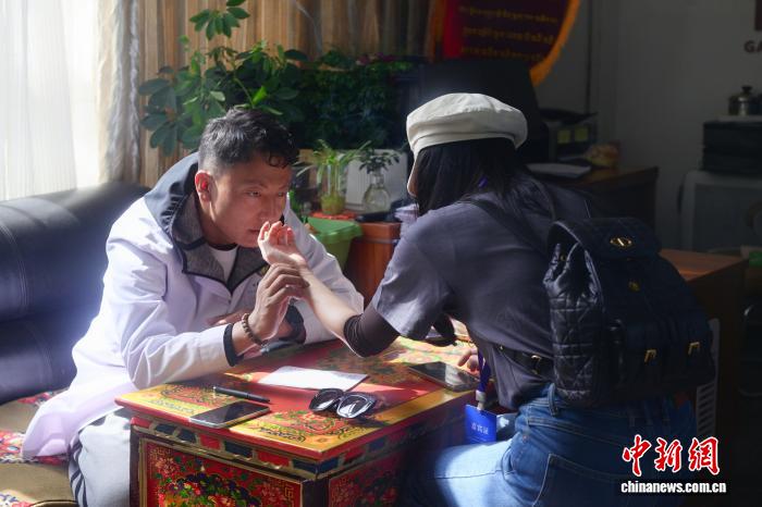 7月25日,西藏拉萨,海外华文媒体代表体验藏医诊疗。王利文 摄