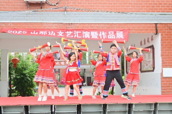 文艺汇演中,孩子们虽额角渗汗,眼神却满溢兴奋。陈佳怡老师认为,这堂课开设的意义远超“学会一支舞”:“当孩子们的舞步与瑶乡文化相遇,便是文化生生不息的最佳体现。”