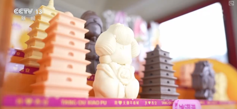 除了“冰馍馍”,还有大雁塔、唐代诗人、仕女形象的“唐韵冰淇淋”系列,以及长安的荔枝、西安城墙、永宁门等造型的文创冰淇淋,口味丰富多样。 文创冰品:单品引流 文化增值