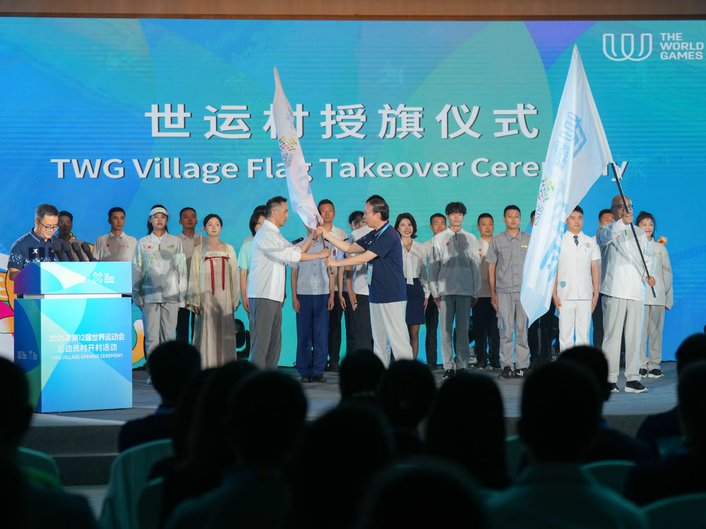 3日的开村仪式既简约又精彩,国际世界运动会协会(IWGA)、世运村工作人员、志愿者等200余名代表齐聚一堂。舞台上,全球五大洲的文化象征交相辉映,世运村村长、工作人员代表和志愿者代表先后上台发言,展现东道主的担当与热忱。随着授旗仪式、集体宣誓环节完成,在全场欢呼声中,运动员村正式开村。
