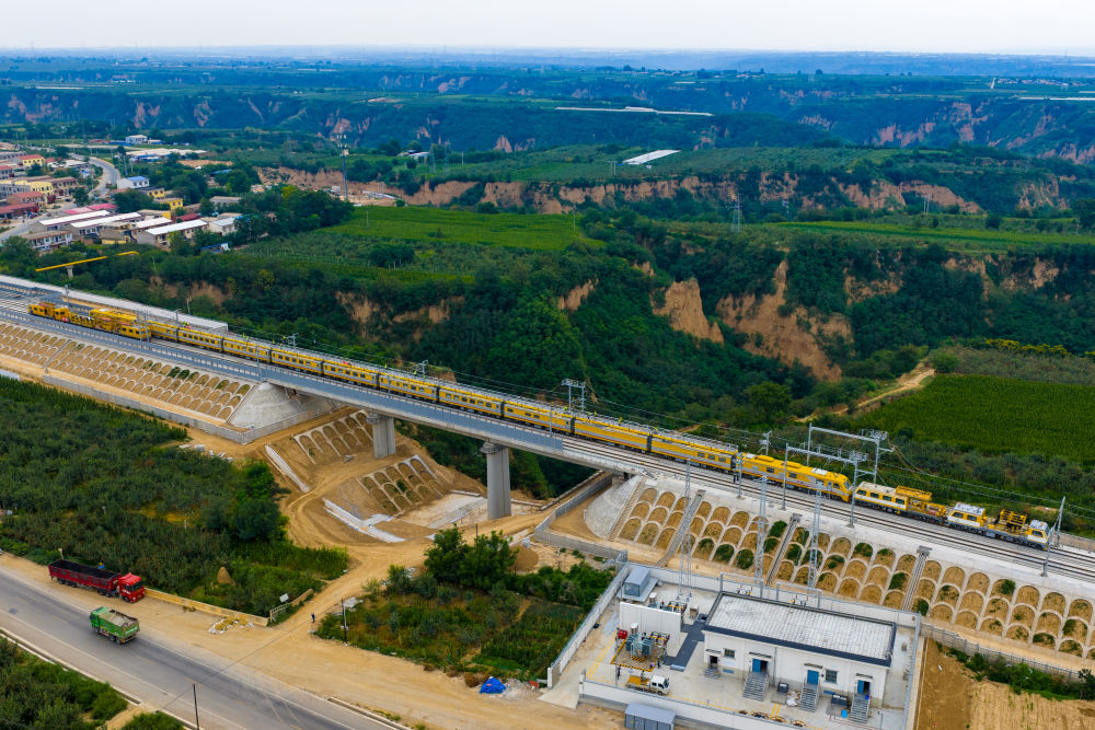 一根根钢轨向远方延伸,一座座桥梁跨越沟壑。在这片镌刻着红色记忆的土地上,高铁建设者们用汗水与智慧编织的交通网,将承载着老区人民对美好生活的向往,驶向更加辽阔的未来。(记者张斌)
