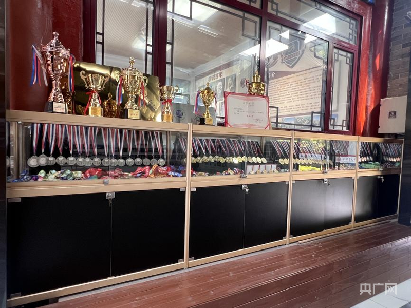 摆满奖杯和奖牌的展柜(央广网发 李思睿 摄)