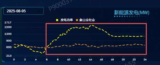 “看,这是昨天新能源发电与全社会负荷曲线,我们可以直观地看到,10:00-15:00之间新能源发电曲线在全社会曲线之上,这就是所谓‘全绿电’时段。”杨鑫宇介绍,2025年上半年,象山县有124天存在新能源发电大于全社会负荷的情况,占比超2/3,可满足象山县以及隔壁宁海县的用电需求,“在这些时刻,象山真正意义上实现了县域全绿电供应,用的每一度电都是绿色可再生的。”