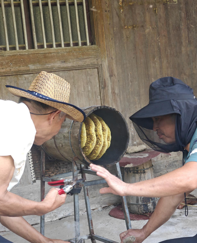 台州仙居县林坑村,蜂农张建平的蜂蜜收割,吸引了不少人驻足观赏。