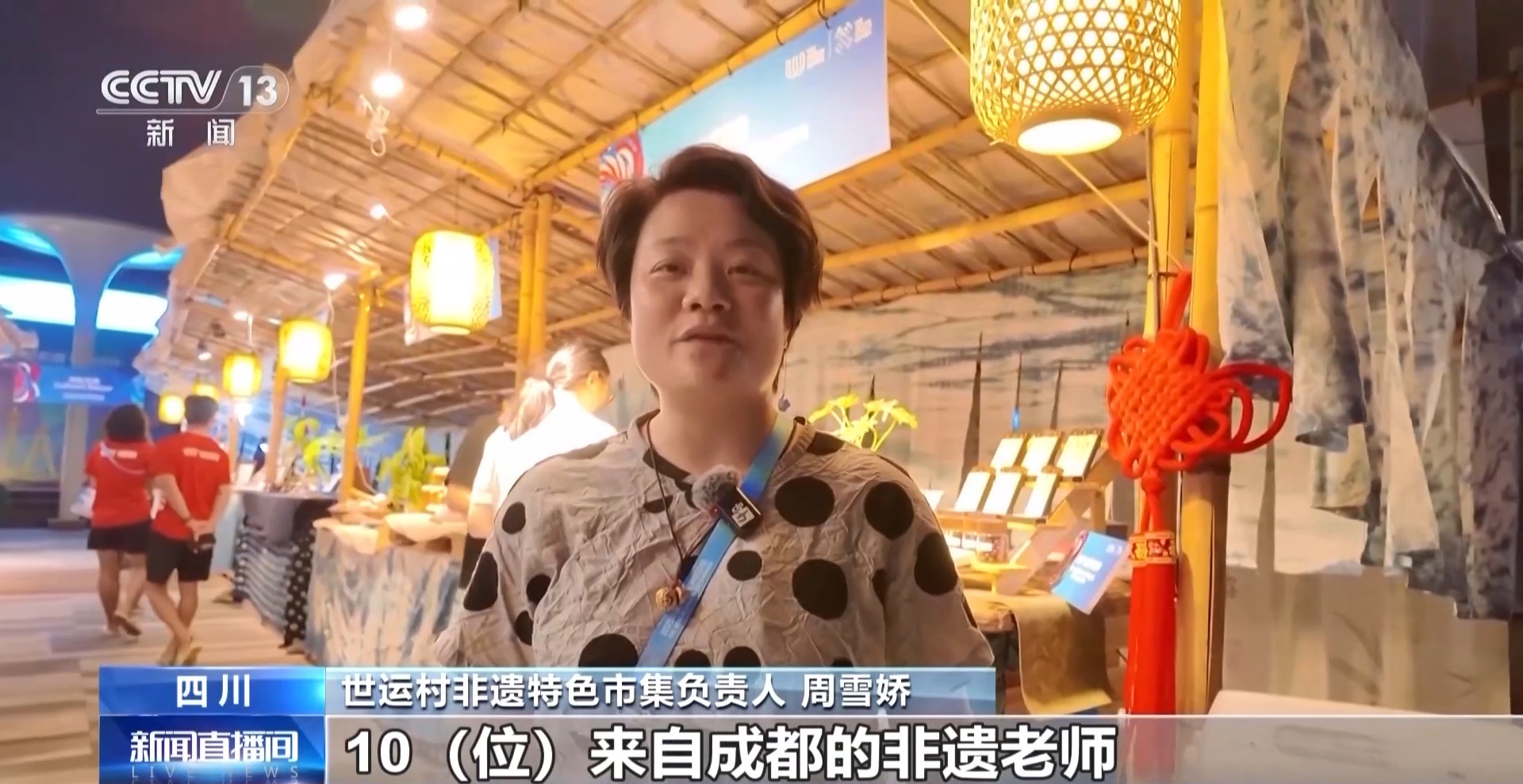 世运村非遗特色市集负责人 周雪娇:我们一共邀请到了10位来自成都的非遗老师参与我们世运村的活动。有大漆、银花丝、道明竹编,向运动员们展示成都的手艺人风采,让大家能够更多了解我们中国的文化以及我们的东方美学。