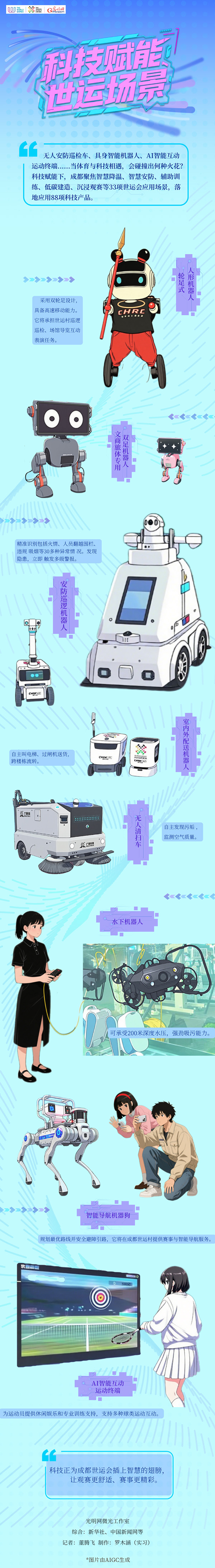 无人安防巡检车、具身智能机器人、AI智能互动运动终端……当体育与科技相遇,会碰撞出何种火花?科技赋能下,成都聚焦智慧降温、智慧安防、辅助训练、低碳建造、沉浸观赛等33项世运会应用场景,落地应用88项科技产品。
