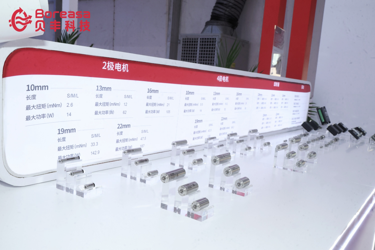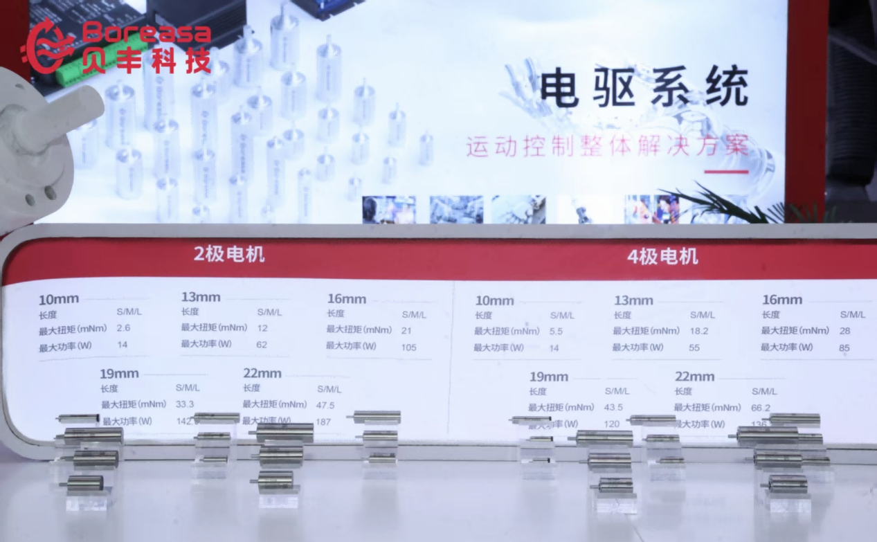 展会上,贝丰科技新品集体亮相,构建完整解决方案,全新电机、齿轮箱、驱动器协同登场。从核心电机的高效能输出,到齿轮箱的精准传动,再到驱动器的智能调控,整套电驱系统经过深度匹配与验证,适配性最优,为行业提供运动控制整体解决方案,免去电机与齿轮箱匹配难题,助力客户加速产品研发与应用落地。尤其是涵盖直径从10mm到22mm的4极微型高性能电机系列,更是填补了行业空白,为低转速高扭矩应用提供了前所未有的动力选择。这种系统化的布局,正是贝丰科技对行业需求的深刻回应——而魏希盟的宣讲,则进一步揭开了这套解决方案背后的技术逻辑。