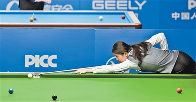 中国队运动员白雨露在台球女子斯诺克6红球比赛中。
