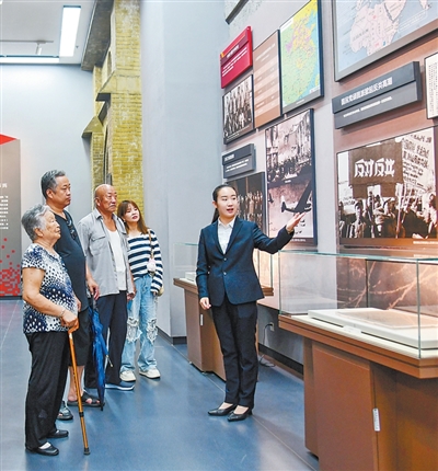观众在百团大战纪念馆听讲解。 刘 胜摄
