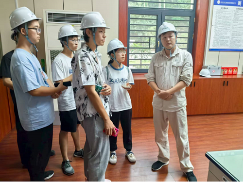 汽车穿行于蜿蜒山路,涔天河水电站静立于山林间。队员们系统了解到,该电站不仅在发电领域贡献显著,其灌溉功能覆盖周边大片农田,保障了农业生产的稳定用水;在调蓄径流方面作用突出,既能有效应对汛期洪水,又能在枯水期为下游补水,尤其为下游水电站的稳定运行提供了重要水源补给。队员们就径流调控的具体机制、生态维护措施及突发状况应急处置方法展开问询,并在技术人员引导下,实地考察了站内精密设备与前沿技术应用。同学们深刻认识到,水电站作为能源转型与生态保护的关键载体,正以澎湃动能为经济社会可持续发展注入源源不断的“蓝色能量”。