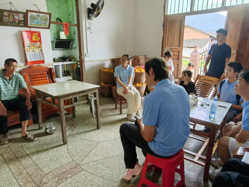 图为实践队员在长山村村民家中采访。柳雯琪 供图