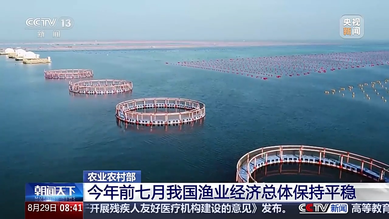 农业农村部数据显示,1到7月,我国水产品总产量近3600万吨,同比增长4.37%。