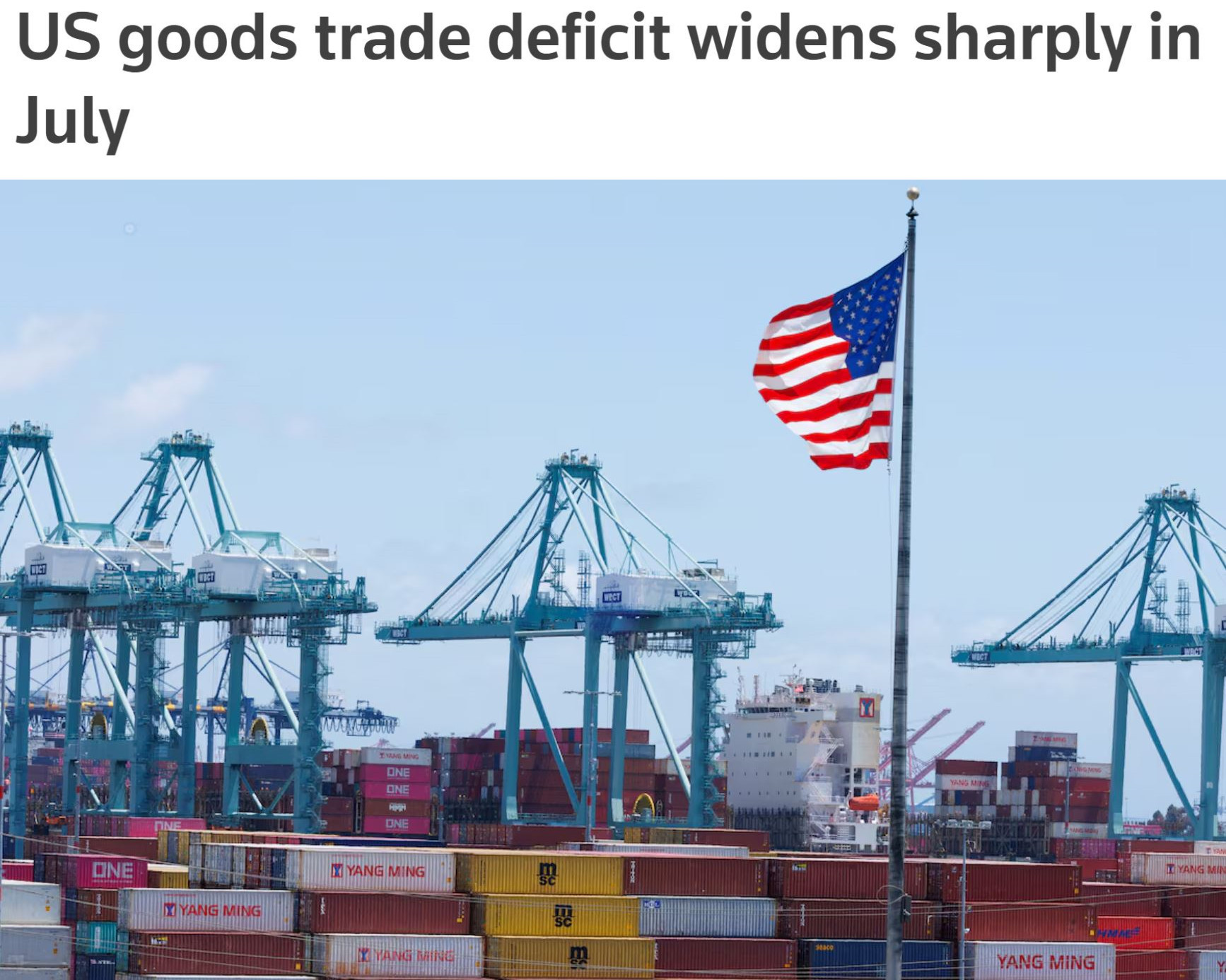 另据总台记者29日报道,美国7月贸易逆差大幅扩大22.1%,达到1036亿美元,远超市场预期的894.5亿美元。