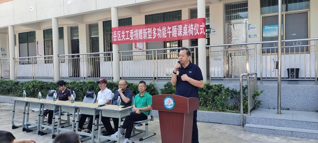 谢德红校长首先介绍了学校办学现状及学生午睡情况。他表示,山区学校受条件限制,学生此前的午睡环境较为简陋,长期以来影响着学习状态与身心健康。此次区关工委捐赠的新型多功能午睡课桌椅,将从根本上改善这一现状,为129名学生提供兼具学习与休息功能的优质硬件保障,学校全体师生对此深表感谢。