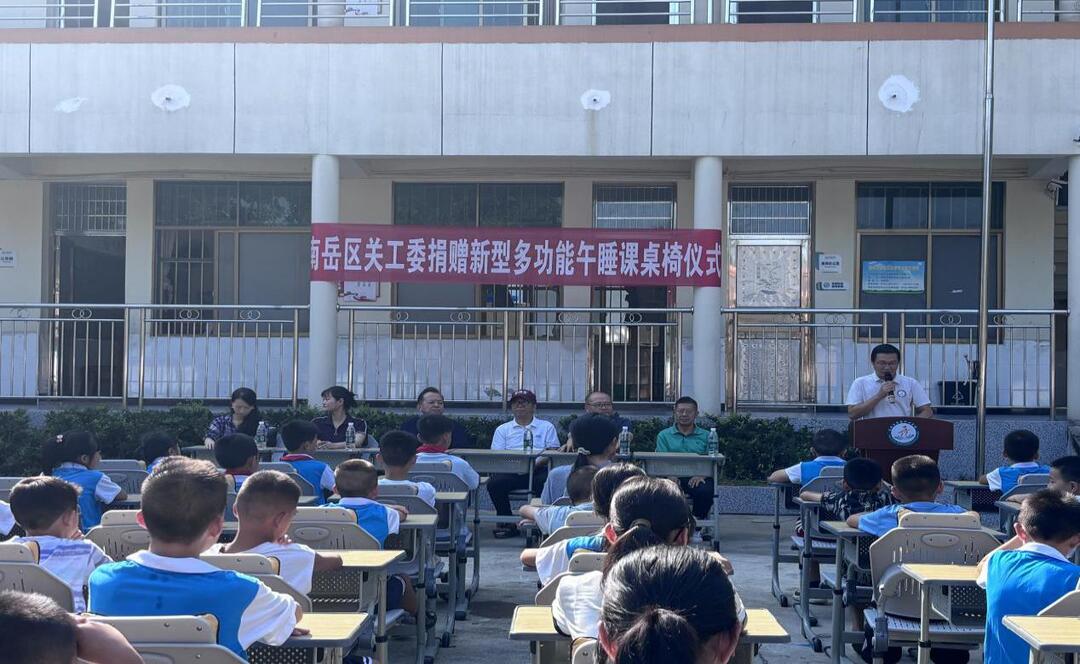 华声在线9月1日讯(彭心怡 李素良)9月1日上午9时,衡阳市南岳区寿岳中心学校操场气氛庄重而热烈,南岳区关工委新型多功能午睡课桌椅捐赠活动在此正式举行。区关工委主任彭旺元、副主任旷顺年等人员及区教育局相关负责人,与学校全体师生共同参与了此次活动,活动由寿岳中心学校校长谢德红主持。