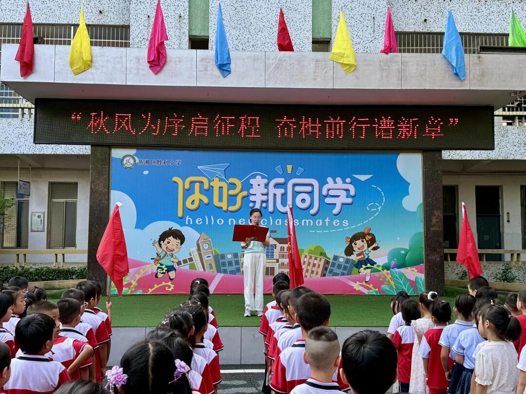 华声在线9月1日讯(通讯员 杨瑞 郭由之)金秋送爽,硕果盈枝。9月1日上午,蒸湘区胜利小学全体师生满怀期待,欢聚在学校操场,隆重举行2025年秋季新学期开学典礼,共同开启新学期的美好篇章。