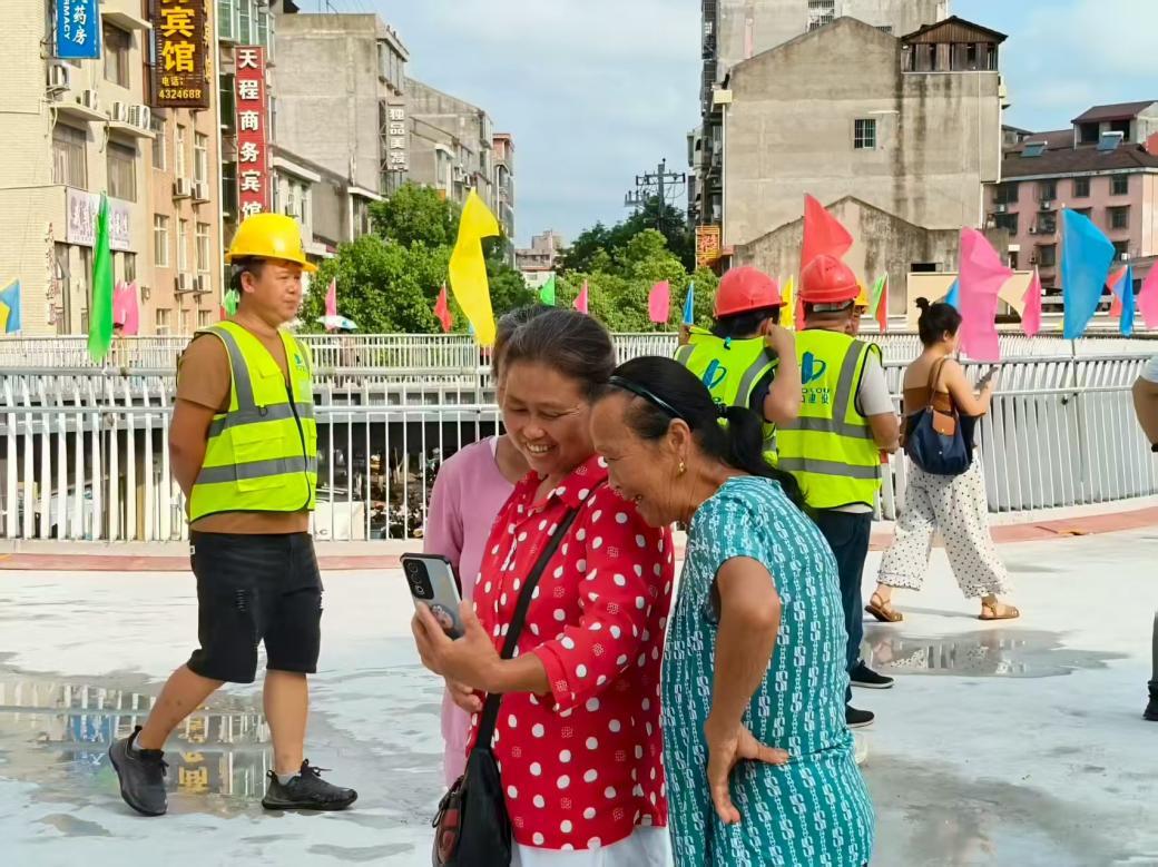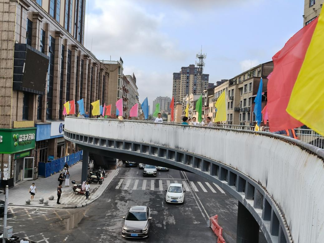8点28分,天桥梯道放行,身着白衣、手持小旗的志愿者们率先踏上梯道,伴着一路颜色各异的彩旗,环绕天桥一周。这座万众瞩目的人行天桥,从今天起正式“上岗”。现场,环形天桥似一座空中浮岛凌驾车流之上,于道路两侧伸出4条有力的臂膀,将繁忙的行人与车流稳稳分开。当首批行人轻快踏上天桥台阶,俯视桥下车流顺畅行进,安全与从容第一次清晰可见。交通动脉通了,居民的眉头舒展了,民心之路也随之宽了,来往居民纷纷竖起大拇指为天桥点赞。